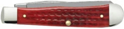 Pocket Worn® Old Red Bone knives have been carried daily by Case enthusiasts for decades. Each knife in the family shares the character of a trusted old pocketknife with the sure function of one freshly opened out of the box. The Trapper gets its name from the consumer it was designed for. It is a jack knife with two full length blades; a slender Clip and a long Spey. The Clip blade is commonly used as a multi-purpose blade and preferred for detail work while the Spey blade is commonly used as an all-purpose utility blade. This knife is constructed with Case Tru-Sharp™ stainless steel which is a special high-carbon steel that helps the blades hold an edge longer than conventional steel. It also offers extraordinary blade strength and corrosion resistance.
