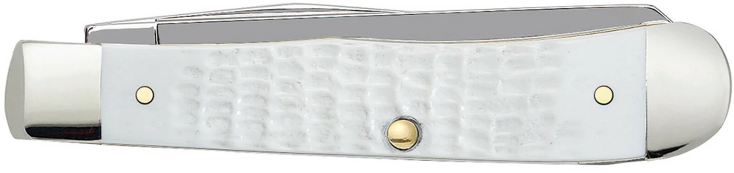 This Trapper is a part of the White Synthetic Sparxx™ Family. The pure white handle is the perfect counterpart to the vibrant red shield. The Trapper gets its name from the consumer it was designed for. Because of its basic trapping and skinning blades and its light weight, it is a must-have knife for those who trap small game. It is a jack knife with two full length blades; a slender Clip and a long Spey. The Clip blade is commonly used as a multi-purpose blade and preferred for detail work while the Spey blade is commonly used as an all-purpose utility blade. This knife is constructed with Case Tru-Sharp™ stainless steel which is a special high-carbon steel that helps the blades hold an edge longer than conventional steel. It also offers extraordinary blade strength and corrosion resistance.