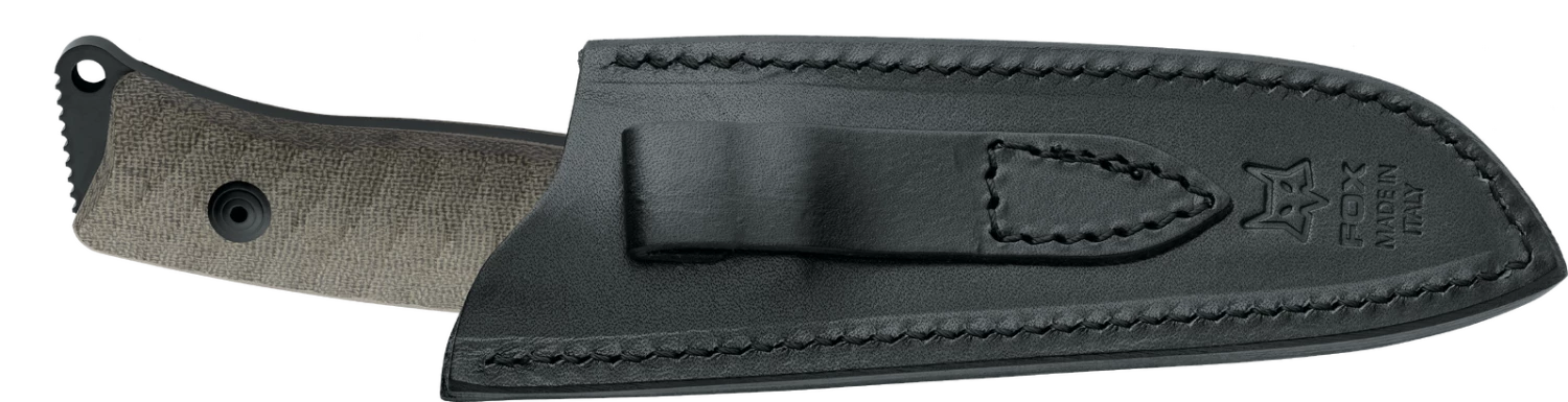 The Fox Pro-Hunter is a premium fixed blade hunting knife designed and manufactured in Italy. It features high grade materials and build quality. Bohler N690 steel offers a hard blade with excellent corrosion resistance. Matched with a OD micarta handle. The Pro-Hunter fixed blade is a beefy, yet nimble hunting knife. It has the strength and reliability of full-tang construction and includes a leather sheath for belt carry.