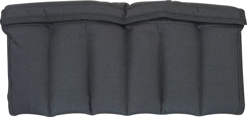 Black heavy cordura construction with fleece lined individual blade pockets. Velcro closure. Will hold most folding knives up to 5″ closed.