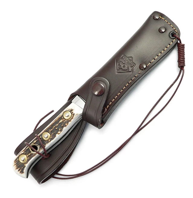 The Puma Skinner is one of Puma’s oldest and most popular traditional hunting knives. With a 5″ blade perfect for skinning wild game, 440C steel for great edge retention, real stag scales promoting a slip-less grip, a grooved thumb rest for accurately controlling the knife when making heavey cuts, needle point tip for piercing, and a durable leather sheath with safety thong to prevent loss, what more does a hunter need?