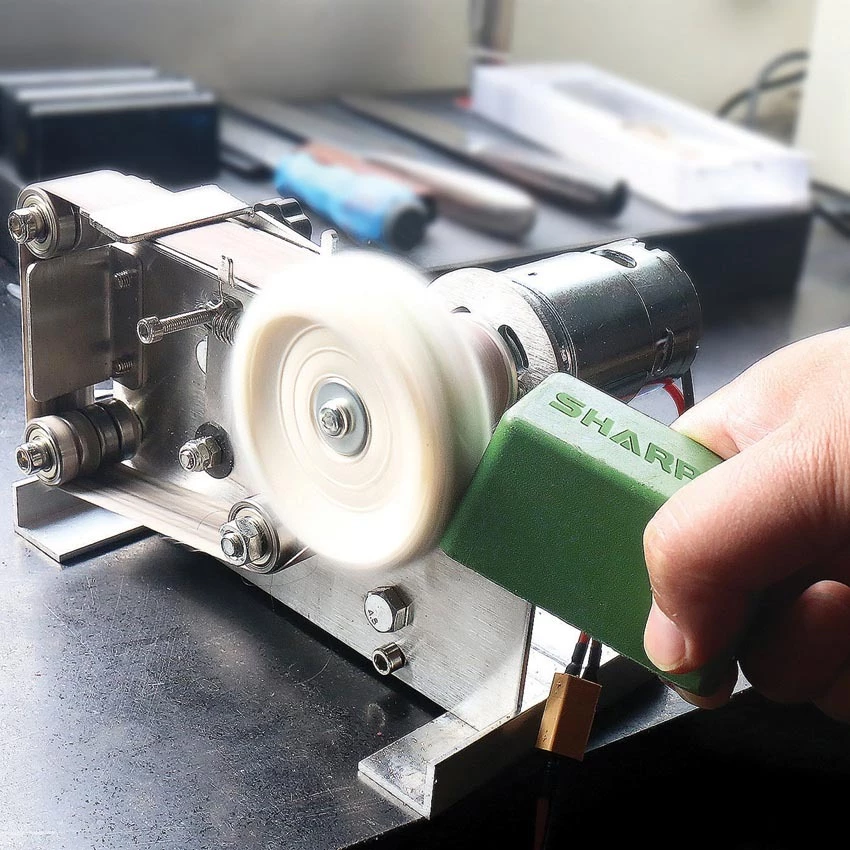 This fine chromium oxide green compound in a wax bar is fast and effective for polishing to a mirror finish on your tools including aluminum, stainless, steel, brass, cast-iron, copper material & much more. The waxy consistency makes it easy to apply the compound. It is commonly applied to leather, wood or synthetic strops, buffing wheel,etc. A 8 Oz. bar goes a long way, providing years of use. Put a mirror polish on any edge.
